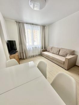 В квартире выполнен хороший ремонт. Просторная гостиная оборудована удобным диваном и телевизором с кабельным/цифровым ТВ. Кухня светлая и функциональная, оснащена необходимой техникой: холодильником, варочной панелью, духовкой, вытяжкой и микроволновой печью. Есть обеденный стол и стулья.