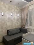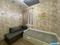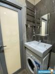 Ламинат везде, кафель кухня и санузел. Натяжные потолки. Есть все для проживания: кровать, диван, шкаф, кухня, стол, стулья, холодильник, цифровое ТВ, варочная панель, микроволновка, стиральная машина, чайник, утюг. Душевая комната, сантехника Grohe.