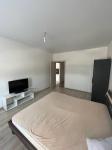 Квартира полностью меблирована и оснащена бытовой техникой: холодильник, стиральная машина, плита, телевизор, диван, двуспальная кровать и шкафы и комод для хранения.