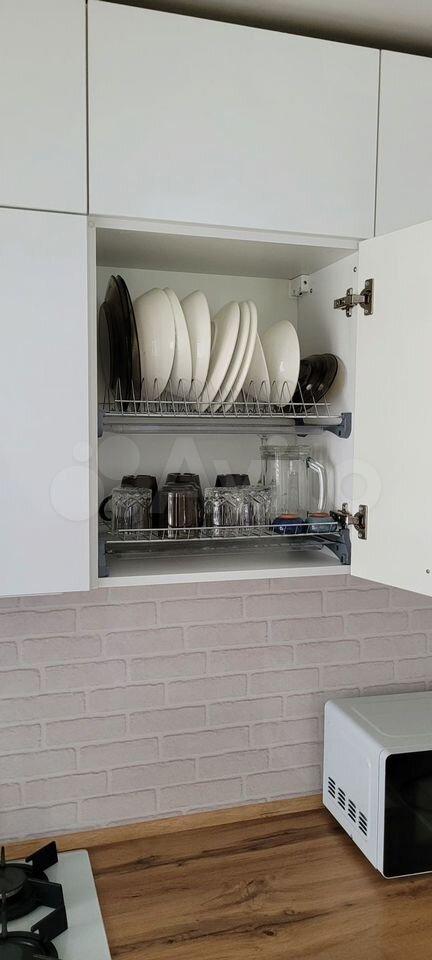 Квартира полностью укомплектована мебелью и техникой- встроенный холодильник, варочная панель, духовой шкаф, вытяжка, стиральная машина, телевизор. Диван раскладной с механизмом аккордеон. Ширина спального места 180см. Большие вместительные шкафы в прихожей и комнате. На кухне стол и стулья.
