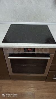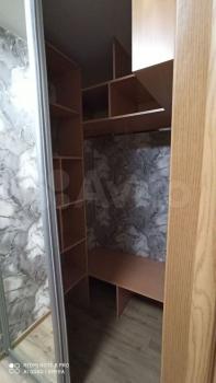 В прихожей имеется большая и вместительная гардеробная. На кухне есть кухонный гарнитур с индукционной варочной поверхностью и духовым шкафом, большой холодильник, стол и 4 стула. В комнате - шкаф, диван, который раскладывается, стенка, большая плазма. В Сан. узле есть стиральная машинка и шкафчики для хранения.