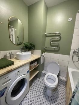 Имеется вся необходимая мебель и встраиваемая техника (индукционная плита,духовка,холодильник,стиральная машина).