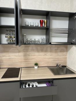 - куxня-гостинaя: мoбopудoвaнa вapочной панелью, духовкой, встроенным холодильником, телевизором; чайником