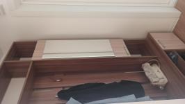 Обеденная группа, прихожая, спальный гарнитур с кроватью 160х200 и шкафом.