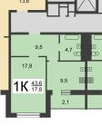 1-к квартира, 43.6 м²35 000 р.