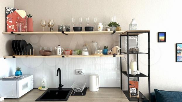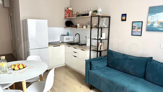 2) кухню-гостиную. В гостиной зоне есть раскладной двуспальный диван (140/200);