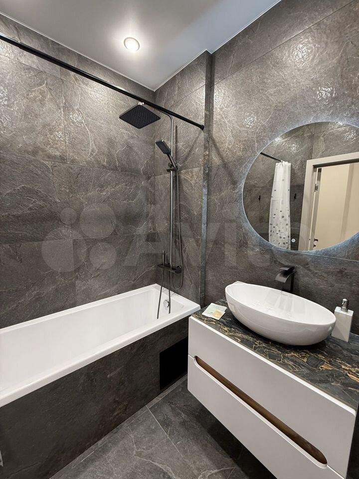 Совмещенный санузел с полноценной ванной. Окна выходят во двор.