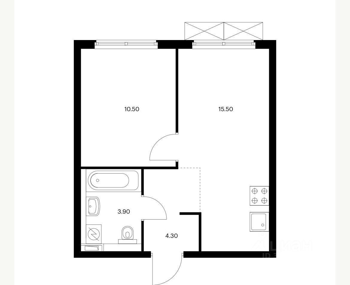 1-к квартира, 42.9 м²40 000 р.