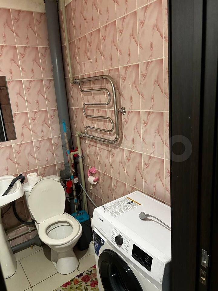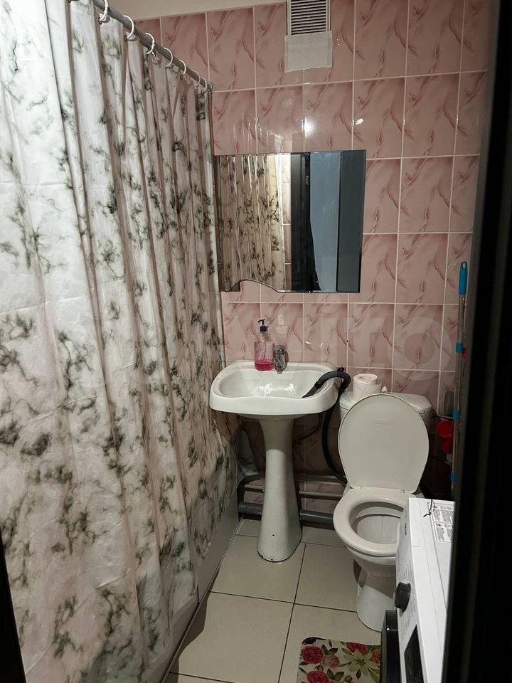 Санузел совмещенный, ящик с зеркалом новый. Место под раковиной для стиральной машины.