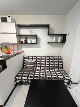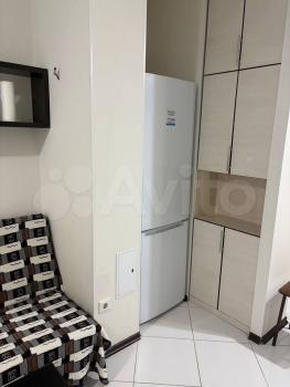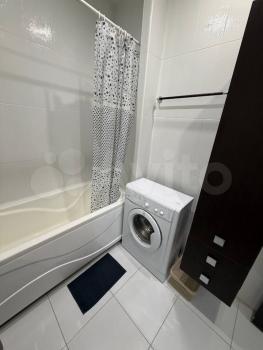 Есть вся необходимая мебель и техника: кровать, 2 кресла, шкаф, кухонный гарнитур, плита, микроволновая печь, холодильник, стиральная машина, кондиционер, телевизор. Санузел совмещенный. Окна во двор.