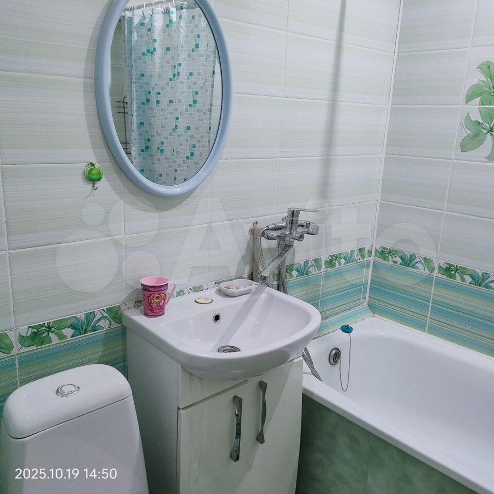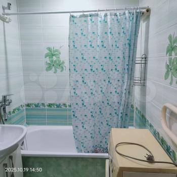 В комнате новый диван и вместительный шкаф для хранения вещей. Санузел совмещенный, оформлен в светлых тонах.