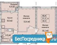 2-к. квартира, 53 м², 19/23 эт., без комиссии