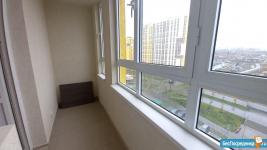 в спальне двуспальная кровать на 140 см, очень вместительный шкаф, тумба. Из спальни выход на большую лоджию.