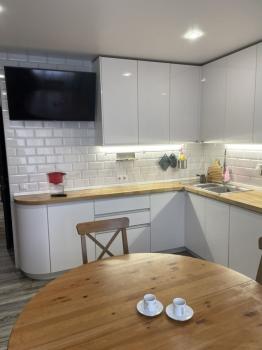 - Кухня (кухонный гарнитур, стиральная машинка, посудомоечная машинка, электрическая печь, газовая плита, встроенная микроволновка, телевизор, холодильник, кожаный диван-кровать с хорошим матрасом, обеденный стол с 4 стульями)