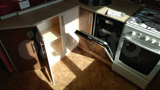 Из мебели - На кухне плита, кухонный гарнитур и посудомоечная машинка.