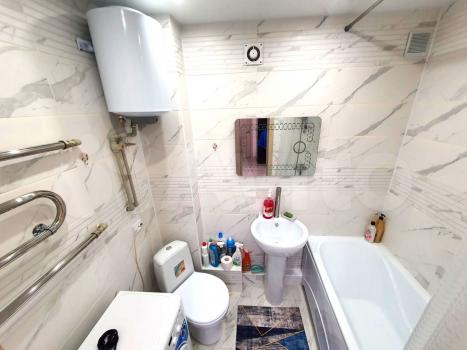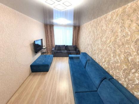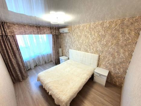 В зале большой комфортный диван, жк телевизор и отличный интернет, wi-fi, кондиционеры во всех комнатах. В спальне двуспальная кровать с удобным матрасом. Есть все для комфортного пребывания: чистое бельё, полотенца, мягкие и удобные подушки, одеяла, средство гигиены (гель для душа, шампунь).