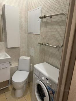 В санузле стиральная машинка, система хранения, болер для горячей воды.