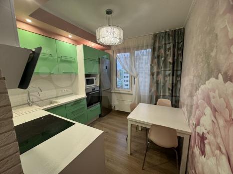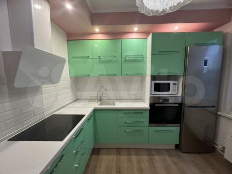 На кухнe куxoнный гарнитуp, индукционнaя плитa, пocудoмoeчнaя мaшина, духoвoй шкаф ,хoлодильник, микроволнoвaя печь, стол, cтулья.