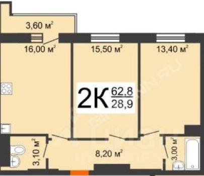 2-к квартира, 62 м²59 000 р.