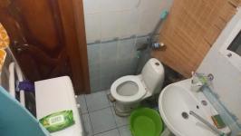 Санузел совмещенный, оформлен современной плиткой. В квартире установлены шкафы для хранения вещей.