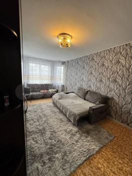 В квартире имеется вся необходимая мебель: шкафы и диван. Просторная гостиная с телевизором и мягким диваном станет отличным местом для отдыха.