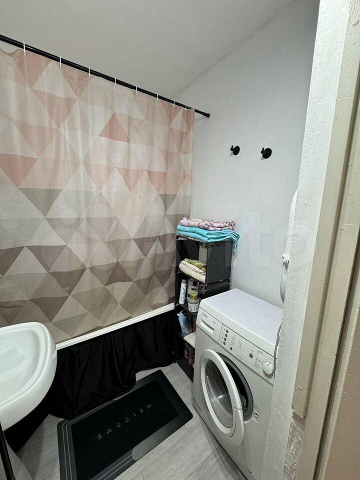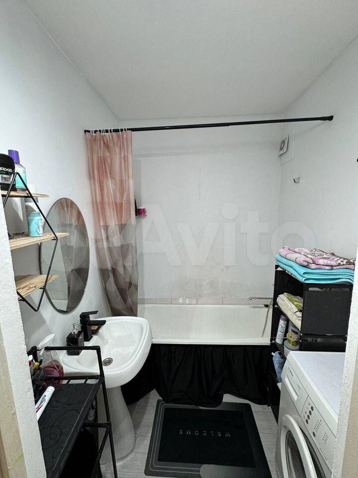 Кухня оборудована необходимой бытовой техникой, включая холодильник и газовую плиту. Ванная комната и туалет раздельные, оформлены в светлых тонах.