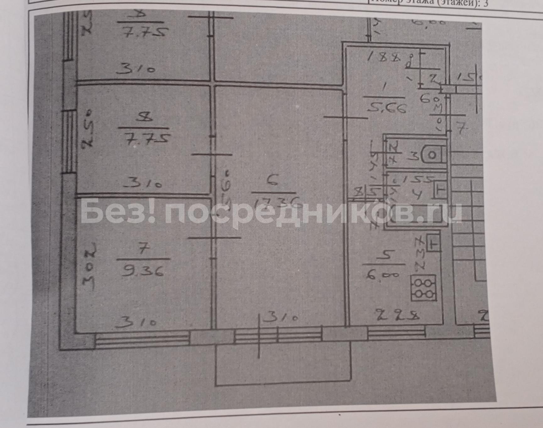 3-к. квартира, 65 м², 5/9 эт., без риелтора
