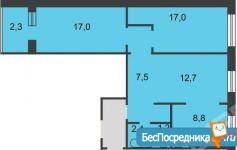 3-к. квартира, 66 м², 4/9 эт., без комиссии