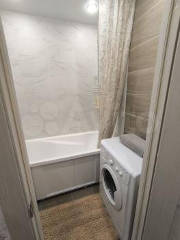 Лоджия застеклена и утеплена, что позволяет использовать ее как дополнительное пространство для отдыха. В квартире раздельный санузел, оснащенный стиральной машиной.
