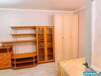 Просторная кухня оборудована всей необходимой мебелью и техникой: здесь есть холодильник и удобная обеденная зона с диваном, который можно использовать как дополнительное спальное место. В комнате установлены кондиционер, телевизор, рабочее место со столом и очень широкий удобный диван. Еще одно преимущество данной квартиры-огромный шкаф Стенли, где много мест для хранения. Есть набор постельного белья, полотенец, пледы, необходимый набор посуды. Ванная комната оснащена полноценной ванной и стиральной машиной.