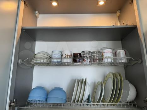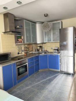 В квартире просторная и светлая кухня-столовая 20 м2, оборудована всей необходимой техникой: посудомоечная машина, телевизор, микроволновка, кулер и даже соковыжималка для свежих утренних напитков.