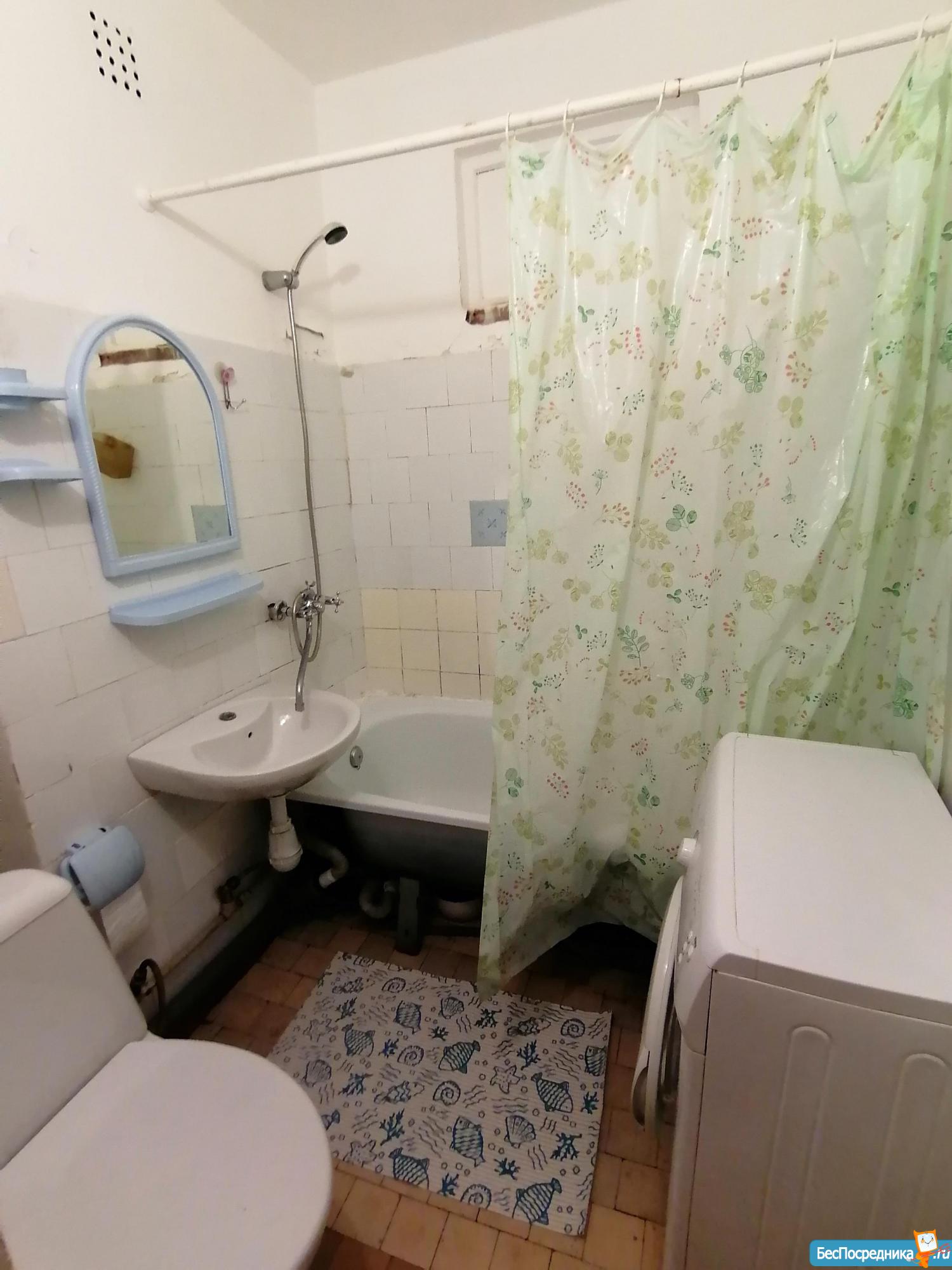 Санузел в кафеле, стиральная машина. В квартире 3 спальных места. Есть 2 шкафа для хранения. Квартира светлая теплая,дом кирпичный. Рядом развитая транспортная развязка, все вузы города,театры,тц.