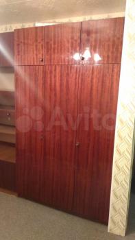- Вместительный шкаф, кровать, стол, стулья, шкаф с полками.