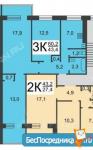 - Планировка:изолированные комнаты, большая гостиная (18 м²), раздельный санузел, застеклённая лоджия и балкон.