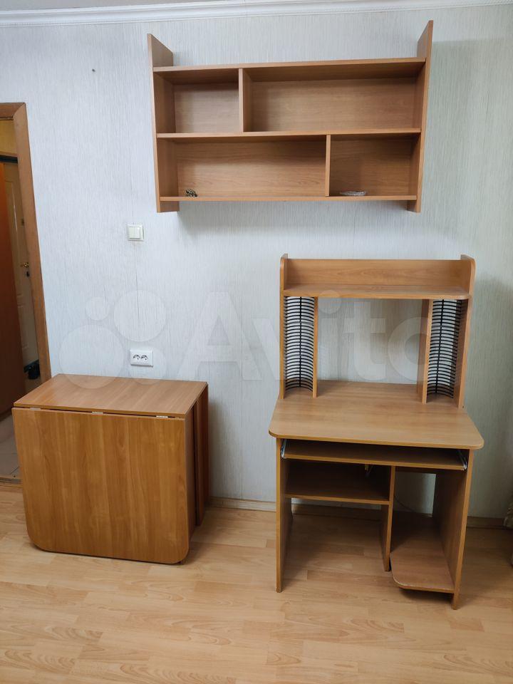 В квартире есть: раскладной диван в зале, стулья, кресло-кровать, ТВ тумба, Смарт ТВ 32 дюйма с wi-fi, стол (раскладной) в зале, полка навесная в зале, большой шкаф в зале с зеркалом и подсветкой, компьютерный столик, шкаф большой в комнате, раскладной диван в комнате, на кухне есть кухонный гарнитур Бобров мебель, кухонный уголок со стульями и стол, ТВ 19 дюймов, в прихожей - два шкафа и зеркало.