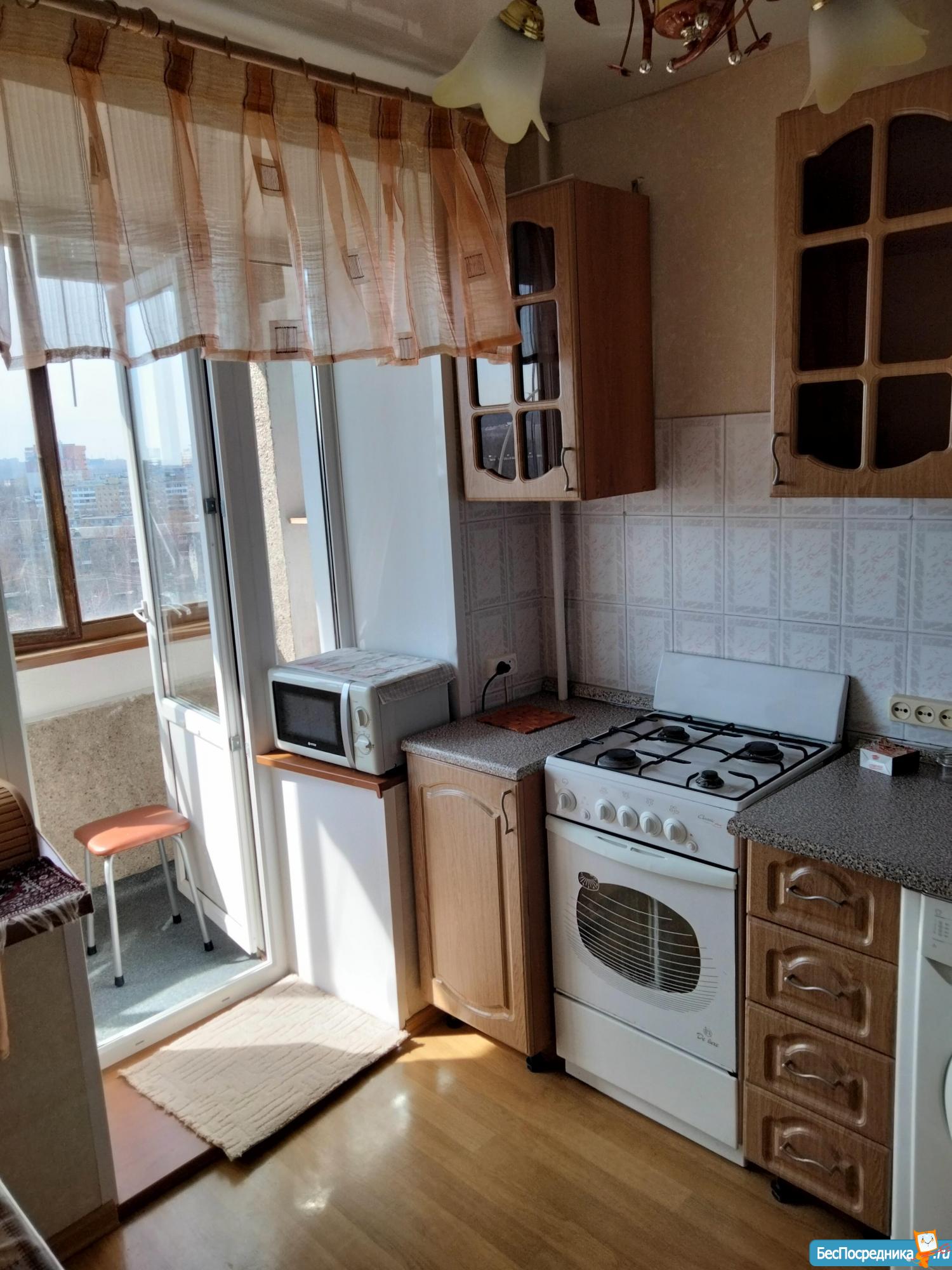 Кухня полностью оборудована необходимой техникой: духовой шкаф, газовая панель, микроволновая печь, электрочайник, посуда для приготовления пищи.