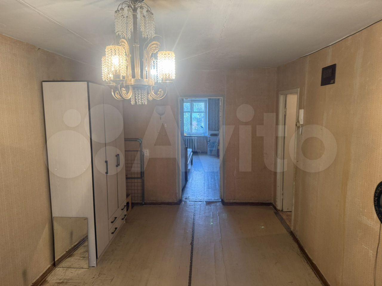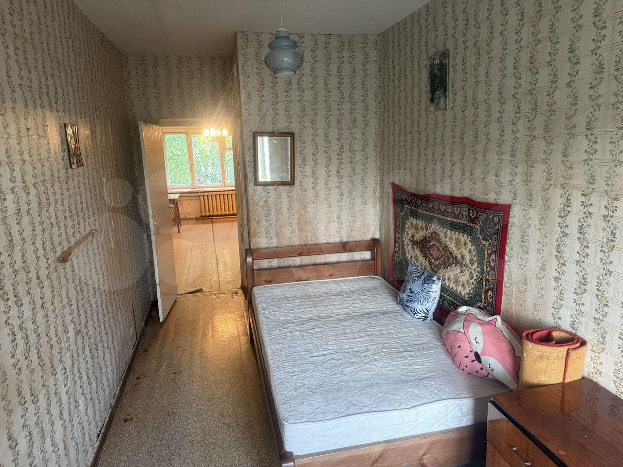 Две изолированные спальни и проходная гостиная. Балкон, окна во двор. Присутствует необходимая для проживания 1-2 человек мебель и техника, две спальни свободны от мебели.
