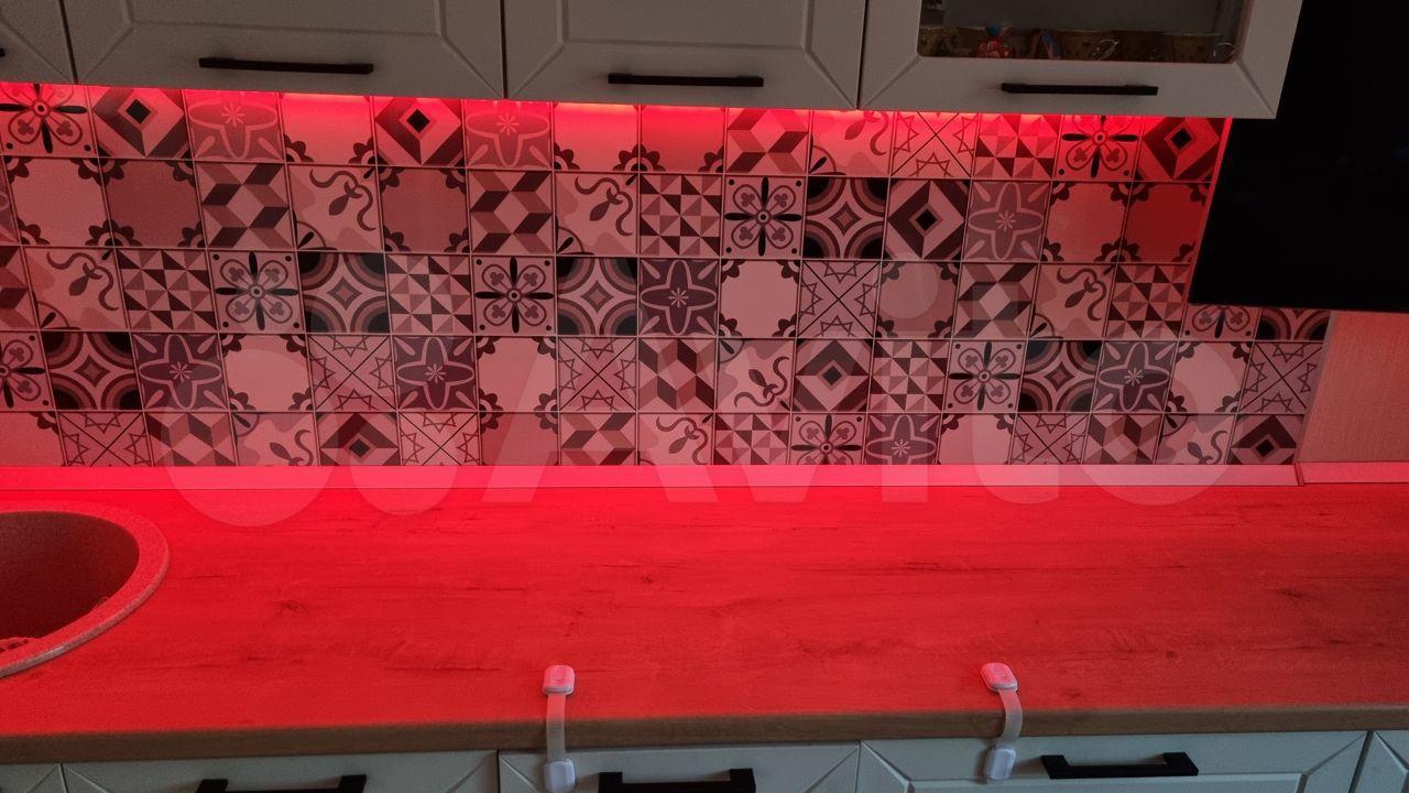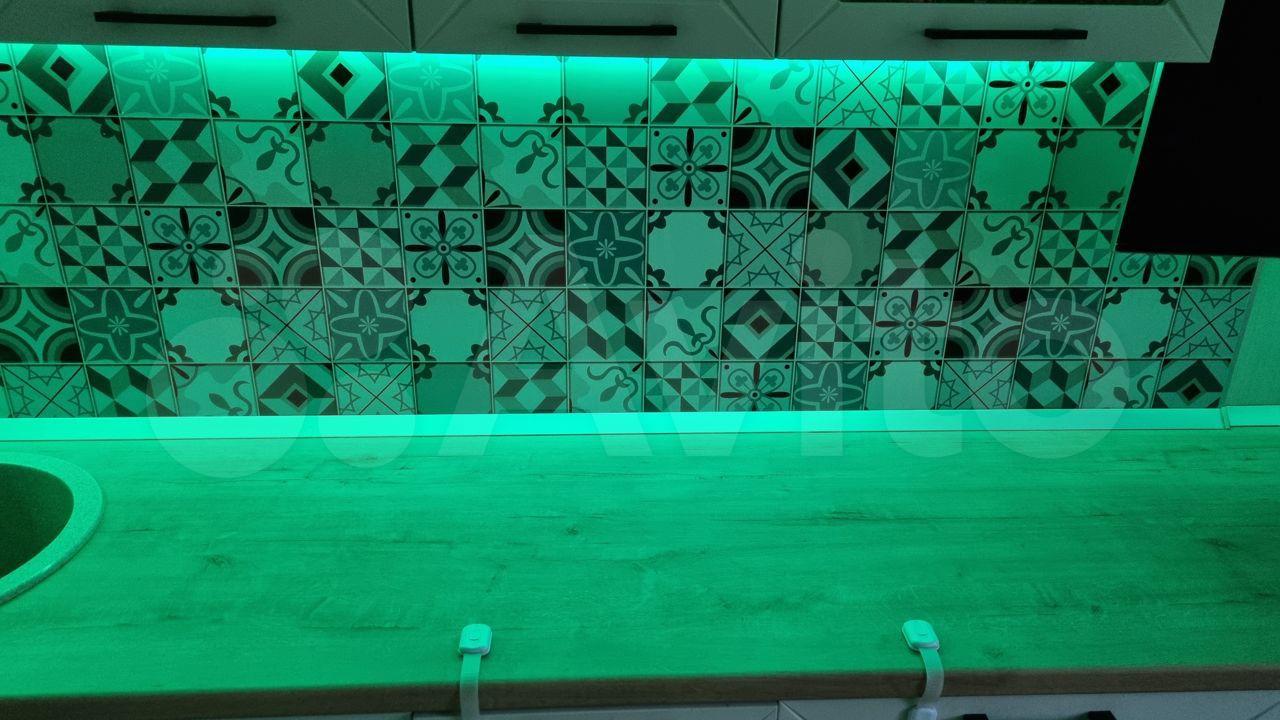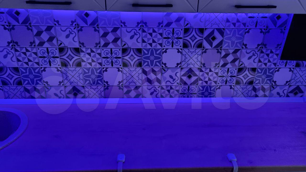 На кухне и в комнатах современные светодиодные энергосберегающие люстры.