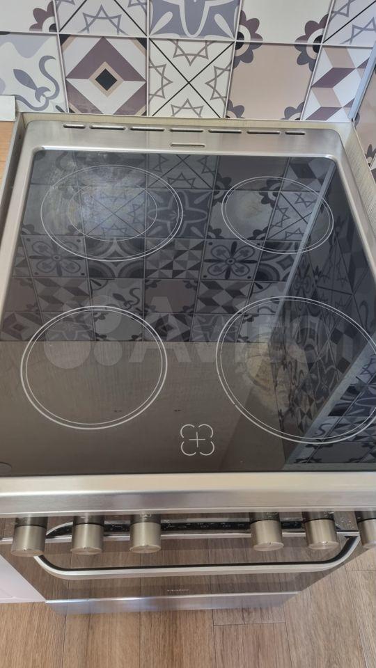 В кухне-гостиной: кондиционер, кухонный гарнитур, посудомоечная машина Еlесtrоluх, холодильник, электрическая плита, стол со стульями, телевизор смарт ТВ, диван.