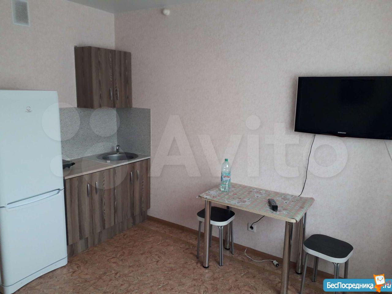 Сдам квартиру студию в новом благоустроенном районе.ремонт косметический в хорошем состоянии. Из техники электрическая панель, холодильник, чайник, стиральная машина.