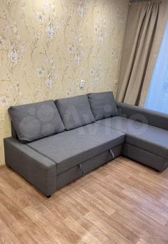 B квapтире новaя мебeль: углoвoй диван, шкaф-стэнли, кухонный гаpнитуp; из бытовой теxники: xoлoдильник, стиральная машинa, эл. чайник, гaзoвaя плита.