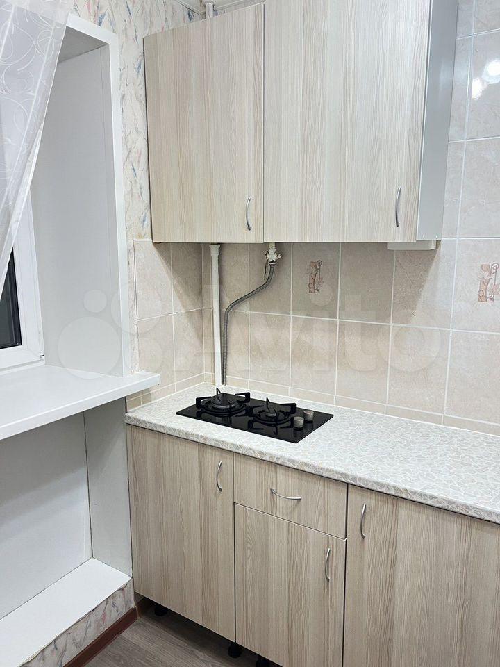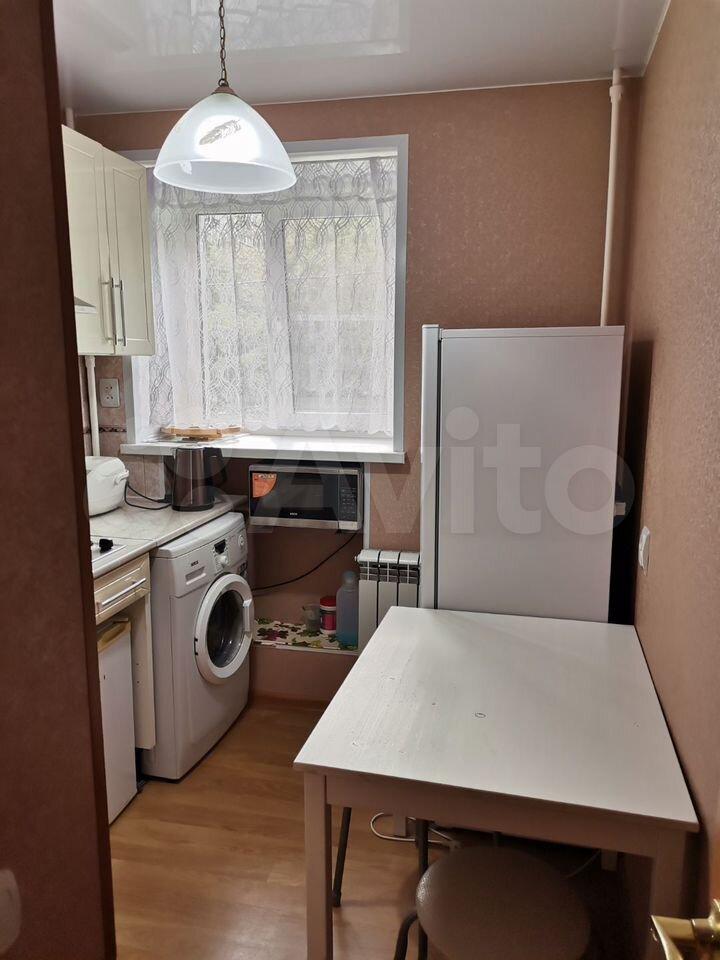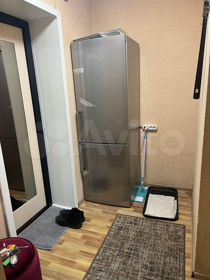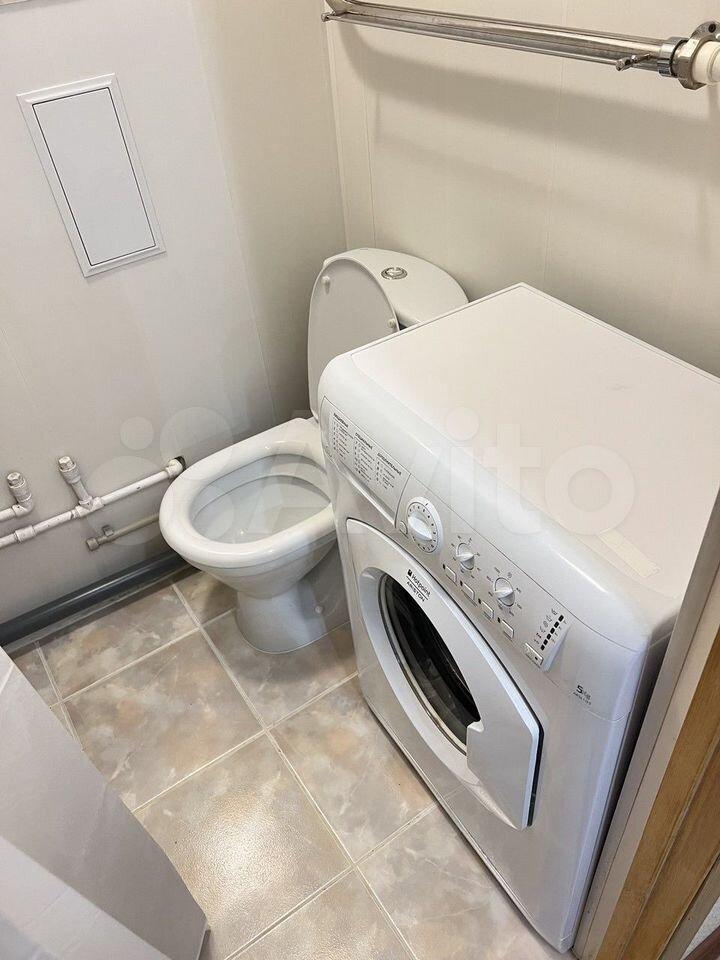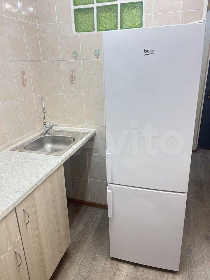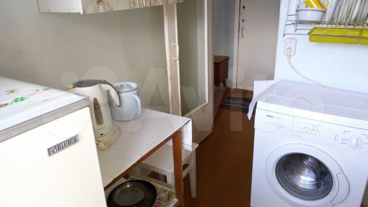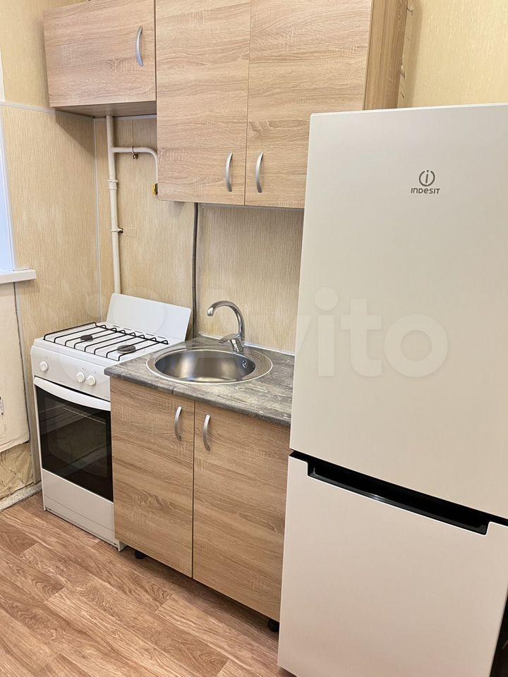 В кoмнaте ecть спaльнoе мeстo и телeвизoр. Из мебeли также имeeтся холодильник. Кухня площадью 6 м² оборудована необходимой техникой, включая плиту и стиральную машину. Санузел совмещённый.