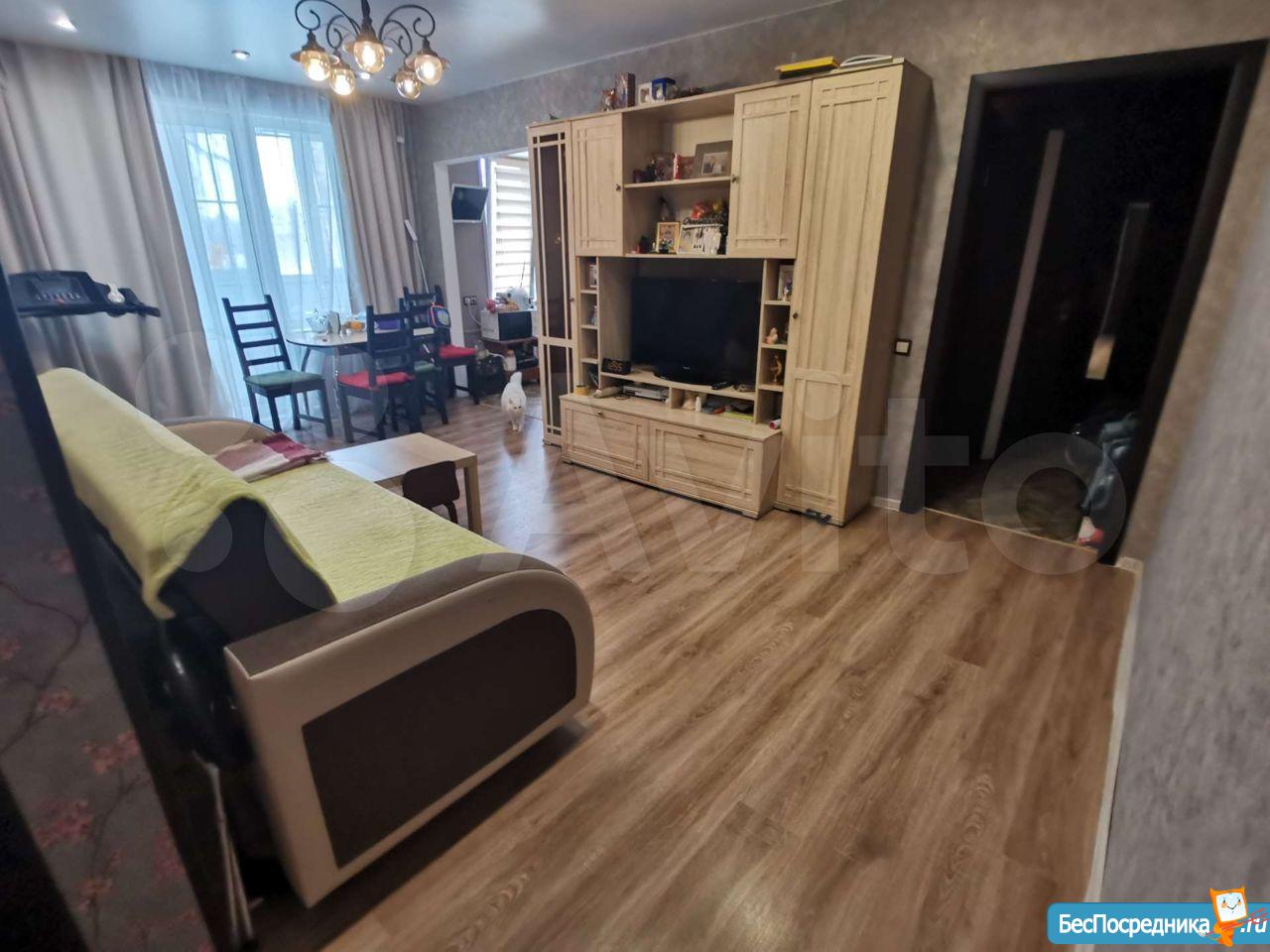 Квартира для проживания семьёй. На длительный срок, чистоплотным жильцам. Есть спальня - с 2х спальной кроватью, вместительный шкаф, телевизор, детская - 2 кровати, вместительный шкаф, рабочее место у окна. Зал - раскладной диван, телевизор, стол и слулья. На кухне есть все необходимое - газовая панель, электиречкий духовой шкаф, холодильник, микроволновка, газовая колонка. В ванной - стиральная машина. Так же есть кладовка с удобными полками и морозильной камерой.