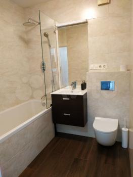 В квартире просторная и светлая комната, огромная совместная ванная комната, кухня-гостинная, большой балкон, где можно посидеть за чашечкой кофе и посмотреть на город.