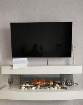 В квартире две двуспальные кровати в одной из них кондиционер и электрический камин.