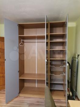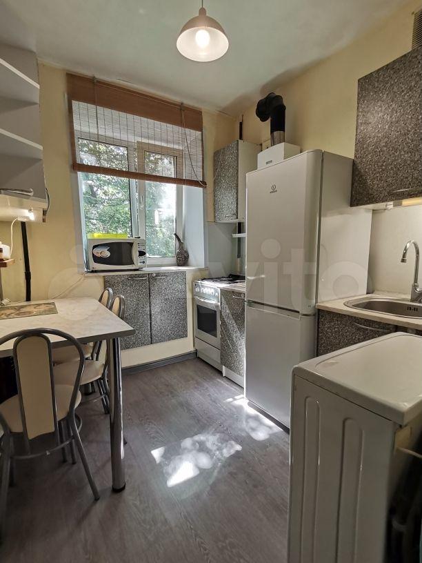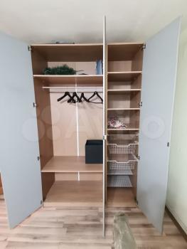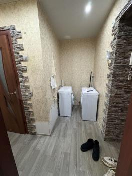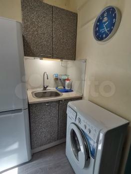 Квартира с хорошим ремонтом и необходимым набором мебели (на кухне: гарнитур, холодильник, стиральная машина, в комнате: диван, шкаф, стол, тумба, в прихожей шкаф для одежды).
