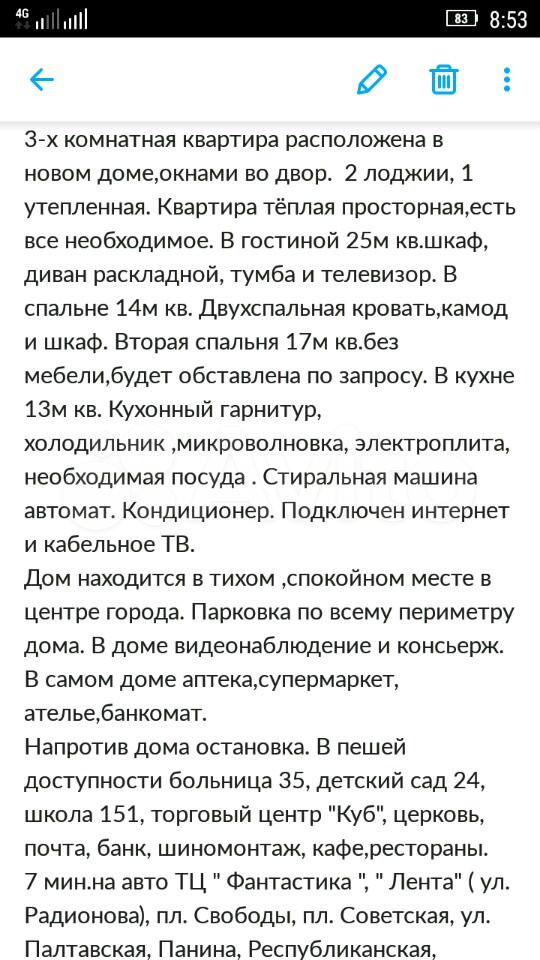 Я адекватный собственник квартиры, в услугах риелтора не нуждаюсь, прямой прозрачный договор арендная плата плюс оплата интернета, коммунальные платежи и счетчики включены в стоимость аренды. Оплата ежемесячно, первый платеж за первый и последний месяц проживания. Сдам, желательно, аккуратной, чистоплотной девушке. Приходите смотрите, на все интересующие вопросы отвечу.