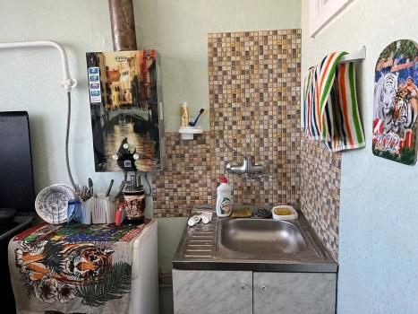 санузел - совмещённый, мебель - кухня, холодильник, плита.