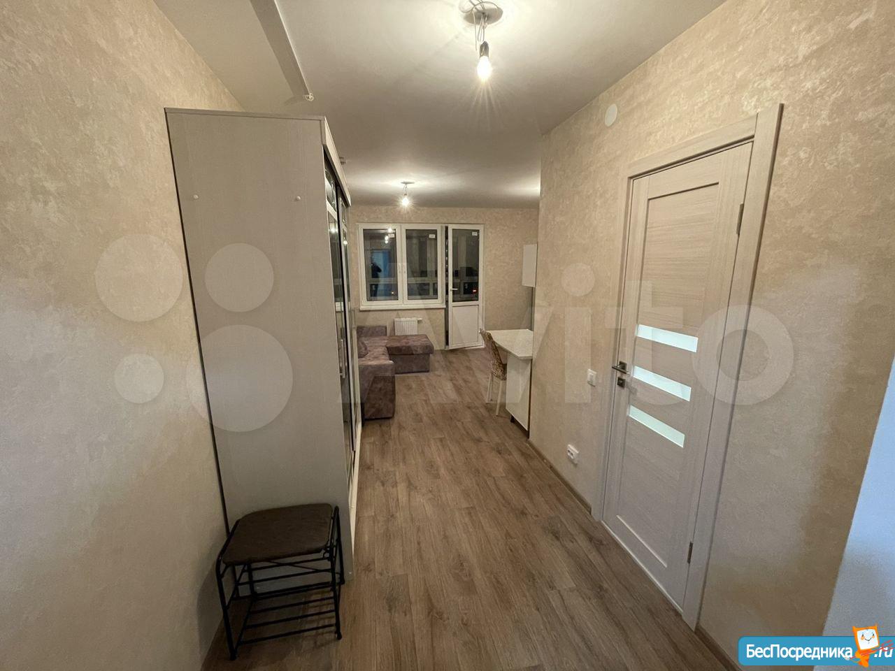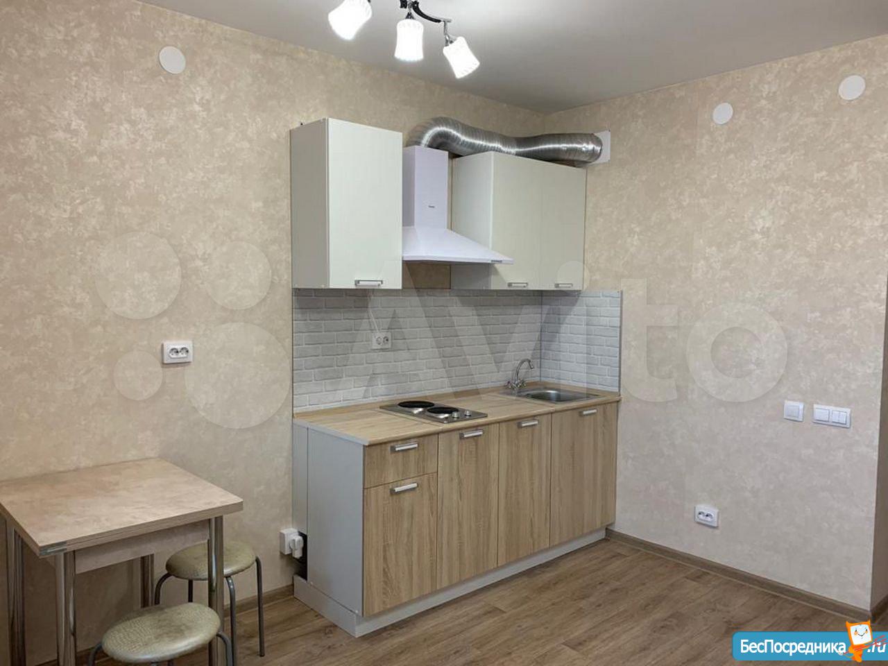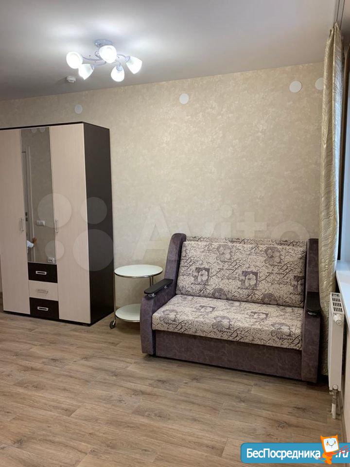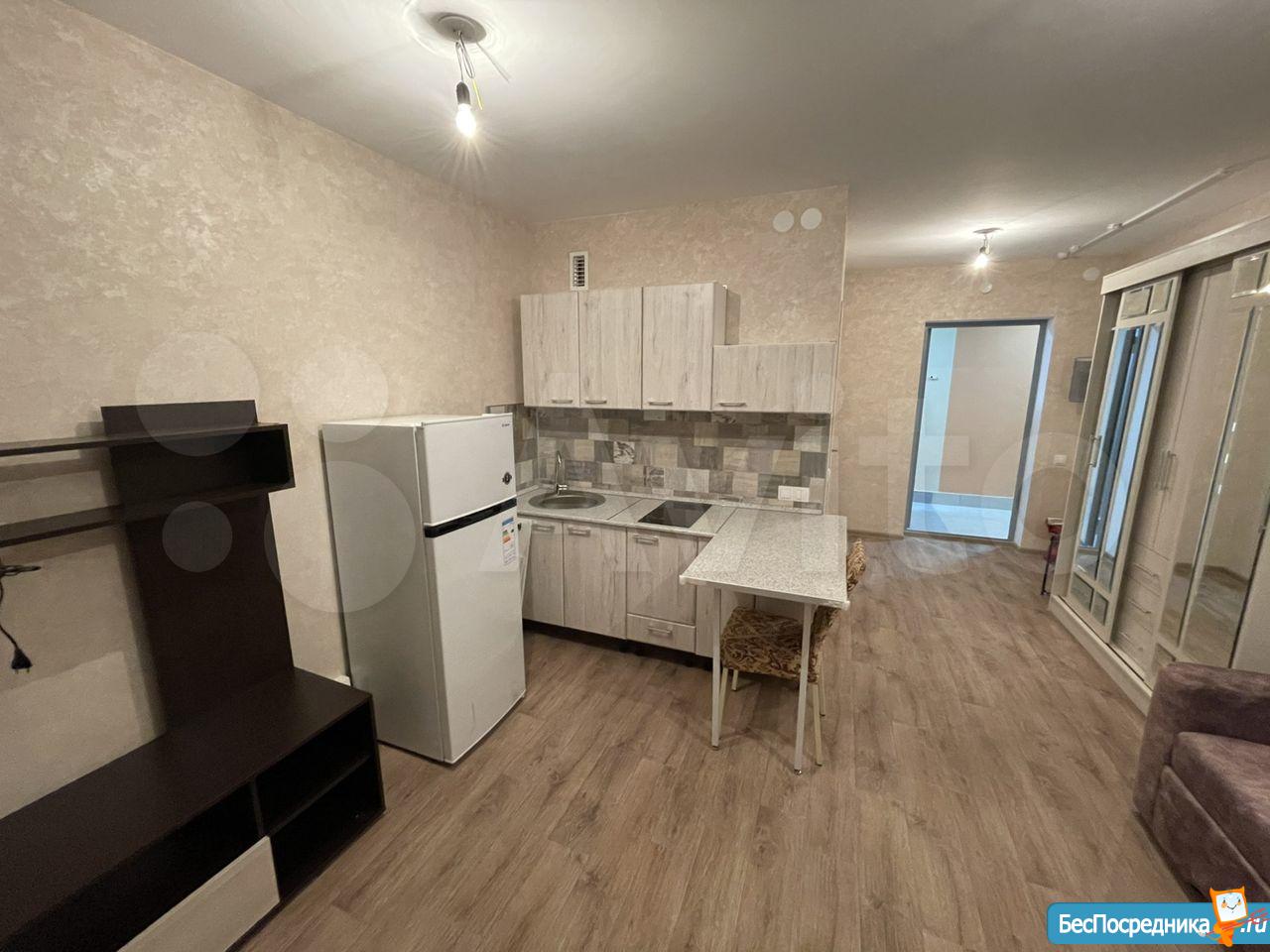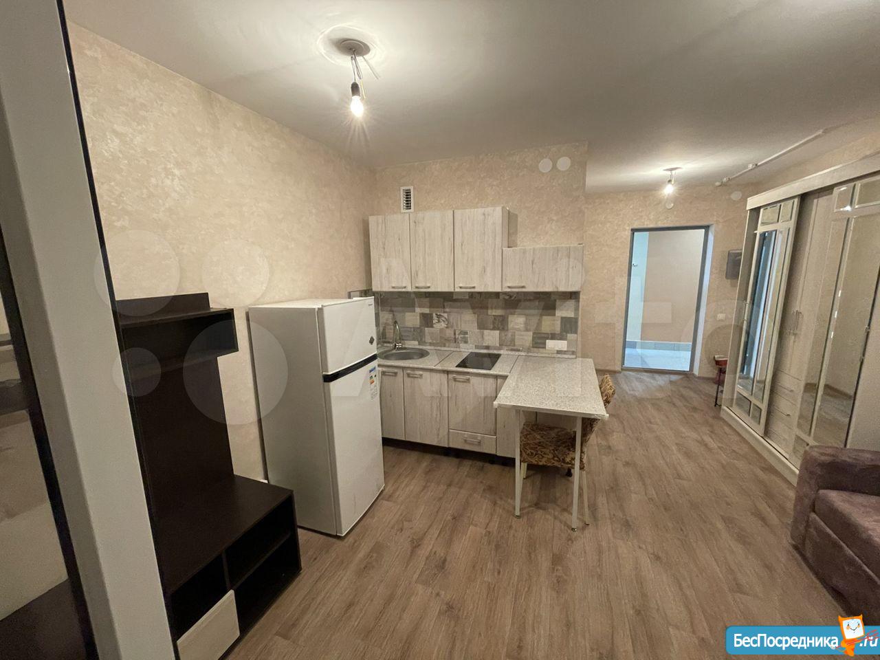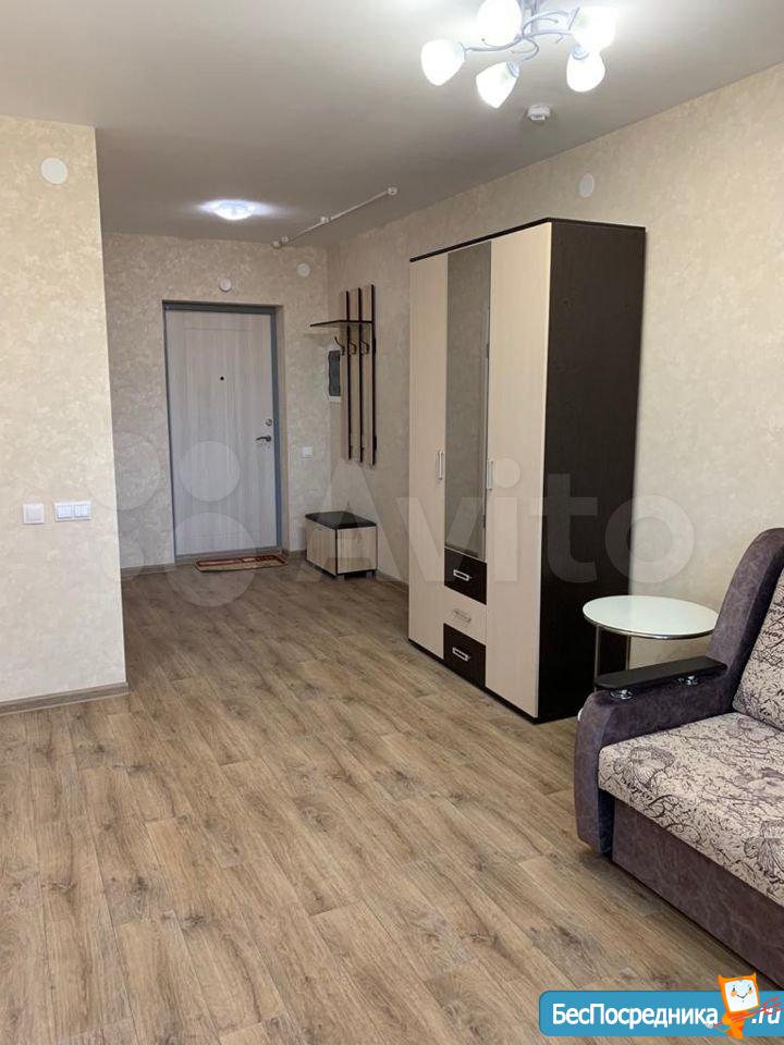 Сдается квартира-студия в новом доме ЖК Новая Кузнечиха. В квартире новая мебель: кухонный гарнитур с электроплитой и вытяжкой, новый холодильник, стол раскладной с табуретами, диван-кровать двуспальный, шкаф большой с зеркалом, в прихожей вешалка и обувница. Большой балкон с отоплением и двойным стеклопакетом с хорошим видом на город. Во дворе детская площадка, большое количество свободных парковочных мест. В пешей доступности микрорайон Кузнечиха, в 7 минутах езды площадь Советская. Оплата арендная плата плюс квитанция по квартплате. От собственника без посредников.