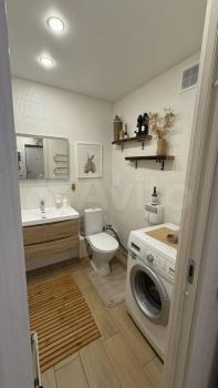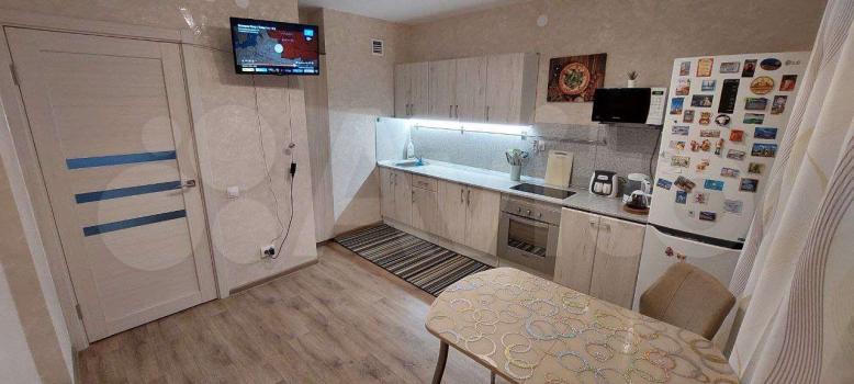 Внутри вас ждет светлая кухня (IKEA) с необходимой бытовой техникой, включая холодильник, микроволновую печь, духовой шкаф, электрический чайник. Гостиная оборудована шкафами и телевизором, журнальный стол и стол книжка раскладной. Санузел совмещенный ( полотенцесушитель, стиральная машина, шкаф для хранения бытовой химии, зеркало)В прихожей шкаф-купе.